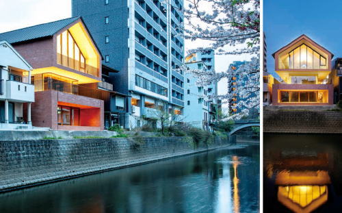 古い街並みの保全が求められる地域において、新たな建築物の表現は難しく、多岐にわたる配慮が必要である。Echoes新町は、地域景観との調和を重視し、近隣の赤煉瓦造りの建 築物や坪井川沿いの水辺空間などを念頭に、洗練された形で再構築され、地域の記憶を継承する建築物となっている。